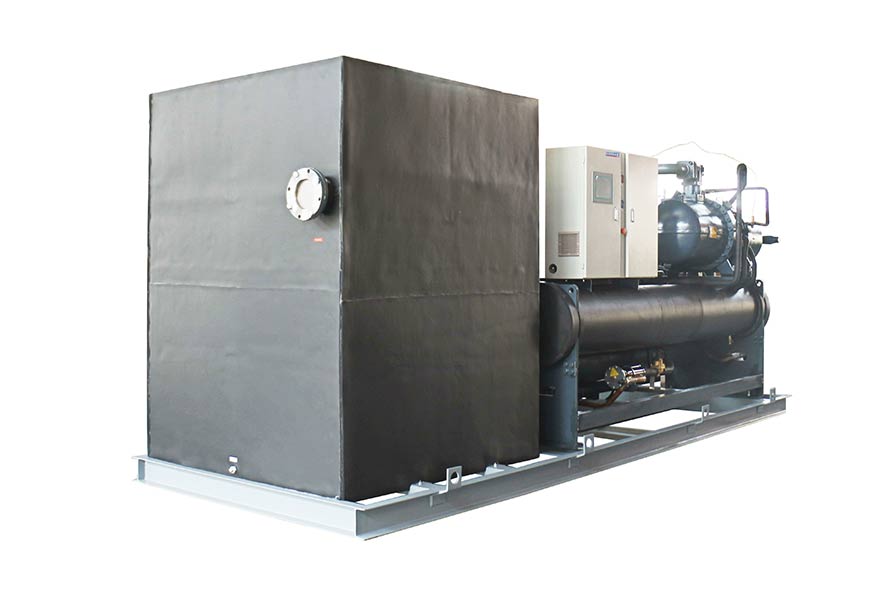 6、以乙二醇為載冷劑的螺桿式變頻冷水機組,控溫范圍在-5度至-35度;