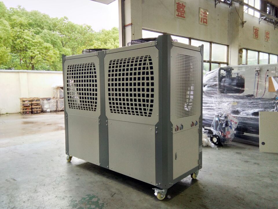 風冷式蘇州冰水機通過風扇以空氣為冷凝方式的控溫設備,有箱式和螺桿式,單機機輸出馬力從1HP~220HP.