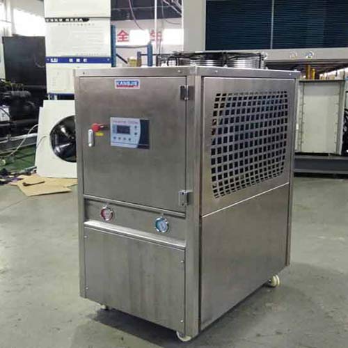 電鍍環境有腐蝕性,所以用水冷式的電鍍液降溫控溫用冷凍機比較多,也有用風冷式電鍍液降溫控溫用冷凍機的,翅片有要求。