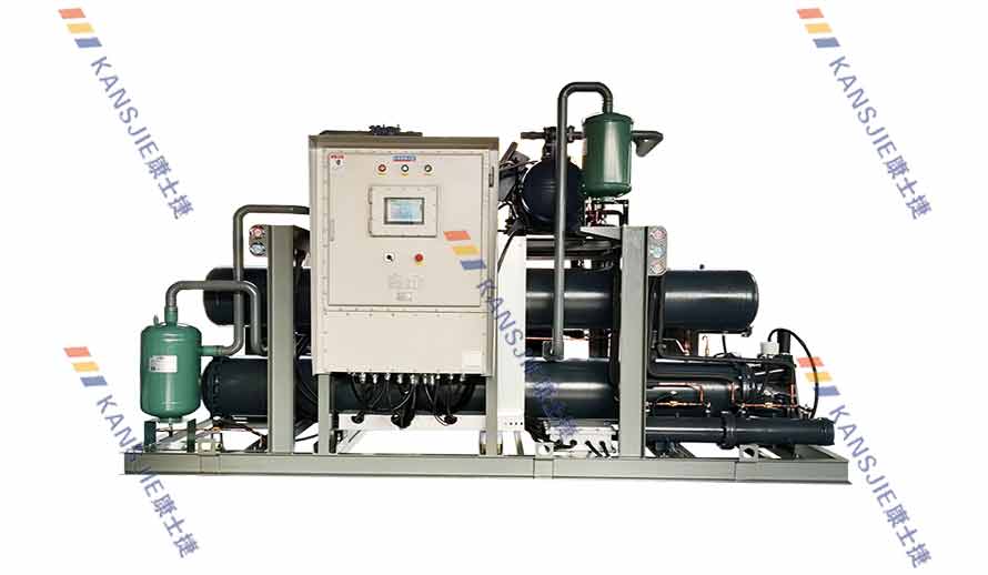 3、二元復疊制藥業用復疊式防爆冷水機組,控溫范圍在-40℃至-90℃;